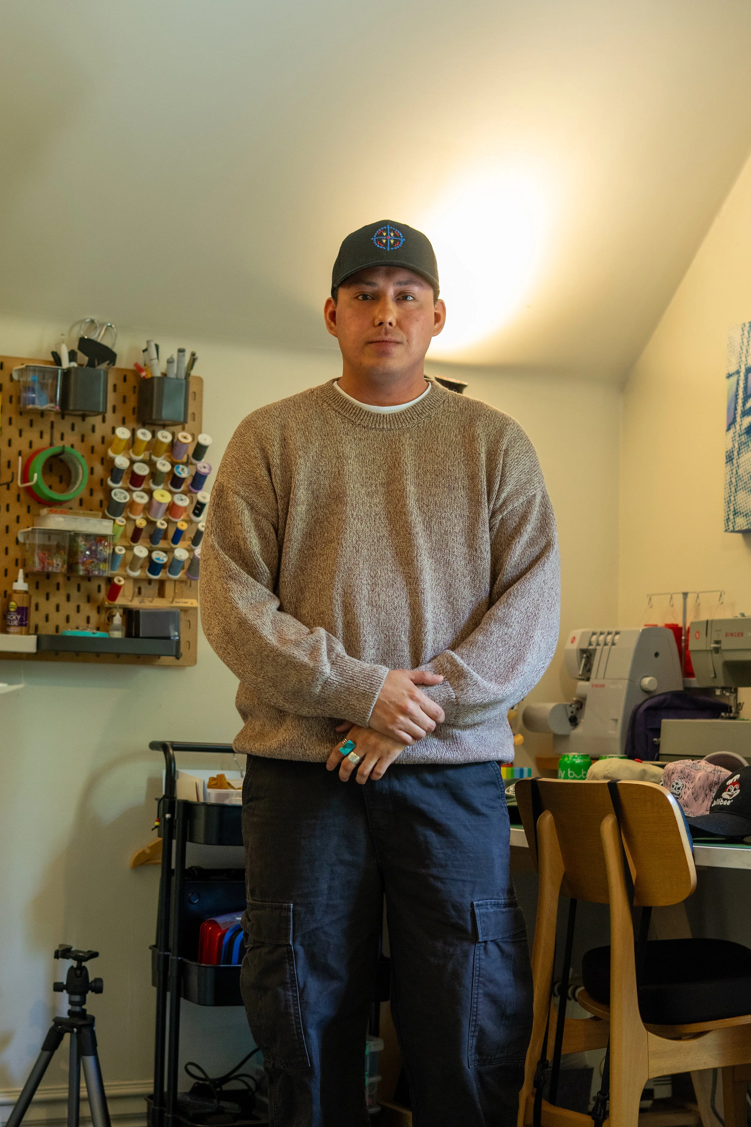 Matthew Provost Naatsikapamatoosin (Two Smudge), is a designer, printmaker, beader, and visual artist from the Piikani Nation within the Blackfoot Confederacy. Matthew is an emerging designer that focuses on creating garments that are thoughtfully created to tell stories through design. Many of his designs incorporate notions of Siksikaitsitapi influence through elements of Niitoyis (Lodges). For him this creates a sense of home in his work as well the ability to share Siksikaitsitapi ways of knowing.